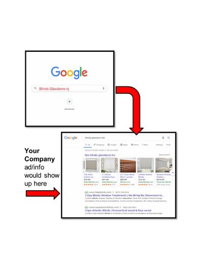 A customer searches directly online for your product or services using your keywords that we’ve loaded in the system. Your custom ad is then populated below the search bar displaying your phone number.
